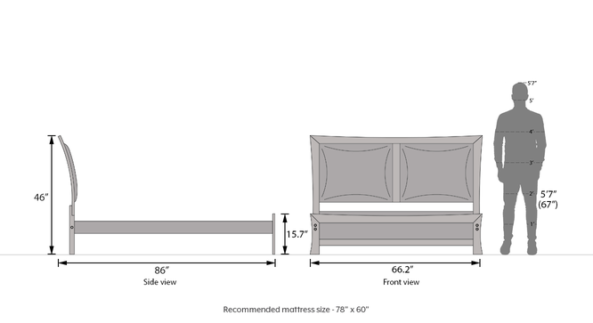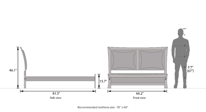 - Recommended mattress size – Queen: 60” x 78” | King: 72” x 78”