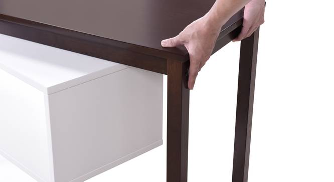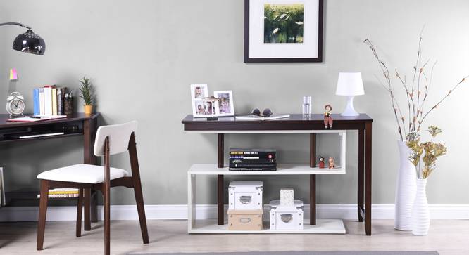 - Swinging style.This intelligent design makes the best of a swivel mechanism, allowing you to transform the Tolstoy study table to a fully extended work surface. It fits snugly into a corner, or use it against the wall. The versatile design enables you to use this as a console table as well, which you can extend as and when you need, on either side thanks to the pivoting poles. Beautifully finished, the dual tone desk will complement any decor style.
